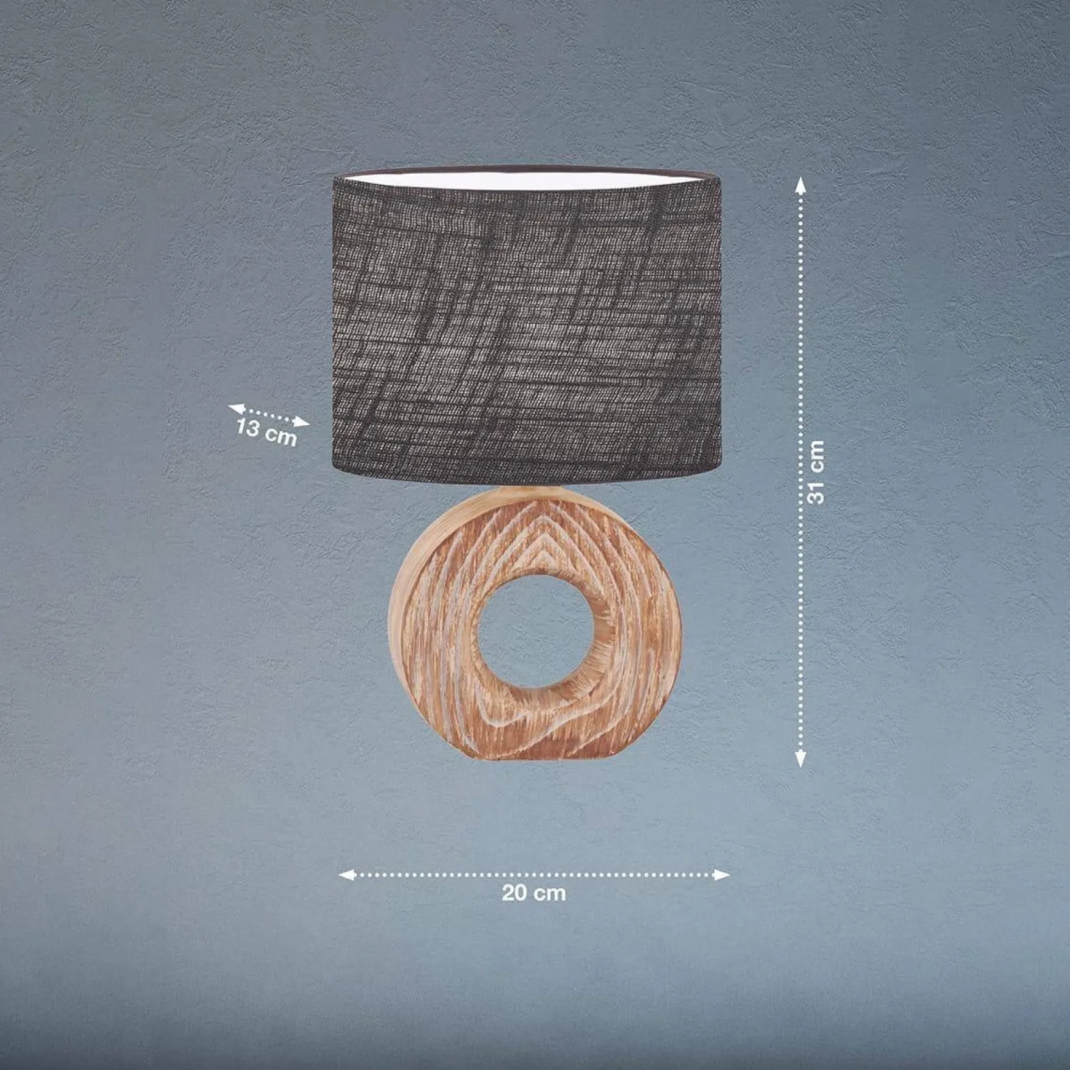 Rodzaj oprawy tej lampy to lampy stołowe wewnętrzne z abażurem, który w kolorze szarym doskonale komplementuje drewnianą podstawę. Taki design nie tylko przyciąga wzrok, ale również wpływa na jakość emitowanego światła, nadając mu przyjemny, stonowany odcień. Lampy stołowe z abażurem to doskonały wybór dla osób, które pragną wprowadzić do swojego wnętrza elementy sztuki użytkowej, które zaspokoją zarówno potrzeby estetyczne, jak i praktyczne.