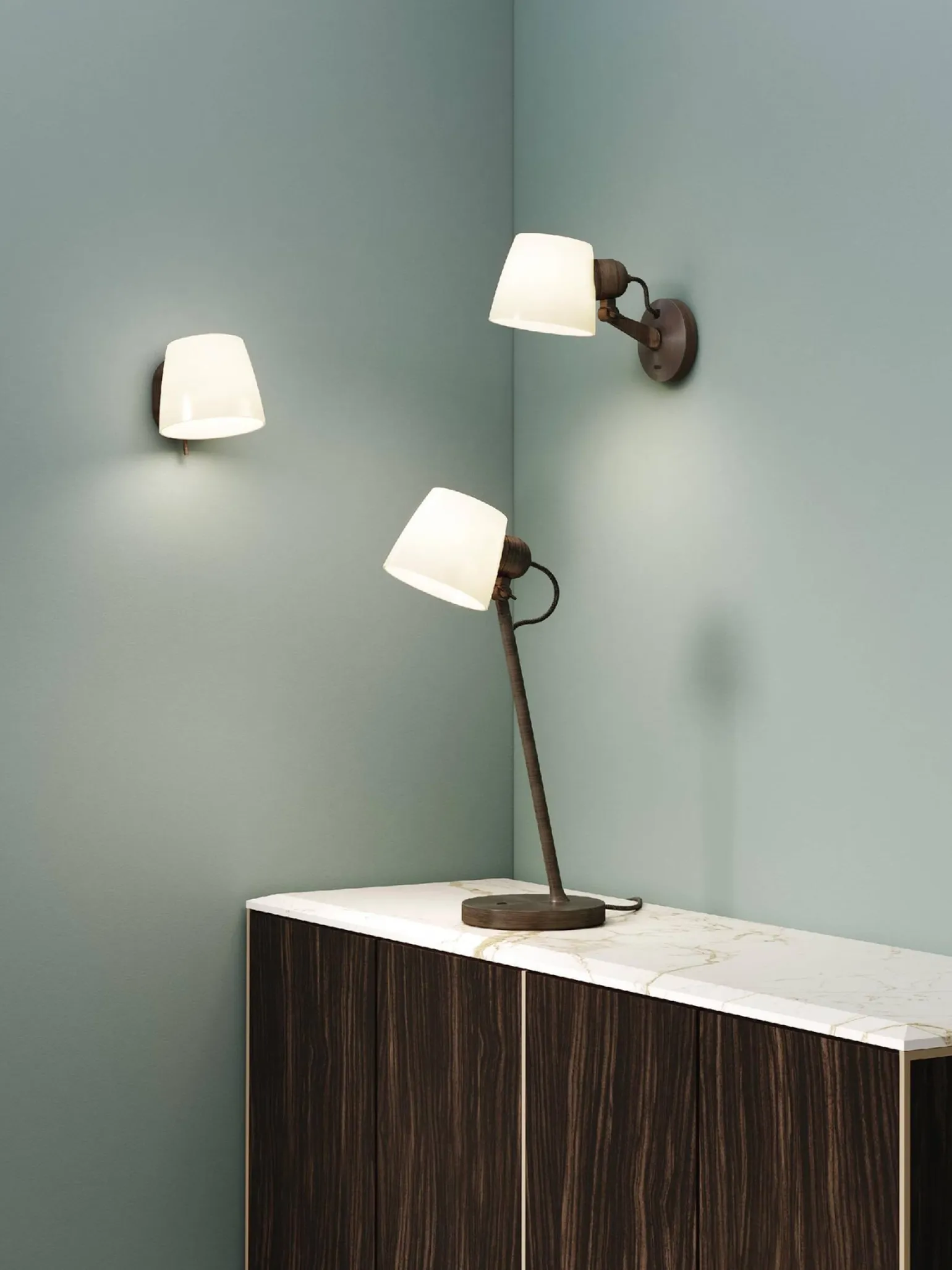 Dzięki zastosowaniu wysokiej jakości materiałów, takich jak cynk i porcelana, lampa Imari Desk emanuje trwałością i elegancją. Jej brązowa kolorystyka doskonale komponuje się z różnorodnymi aranżacjami wnętrz, nadając im wyjątkowego charakteru. Lampa zawiera ruchomą oprawę, co umożliwia skierowanie światła w wybranym kierunku, co czyni ją idealnym rozwiązaniem zarówno do pracy, jak i wypoczynku.