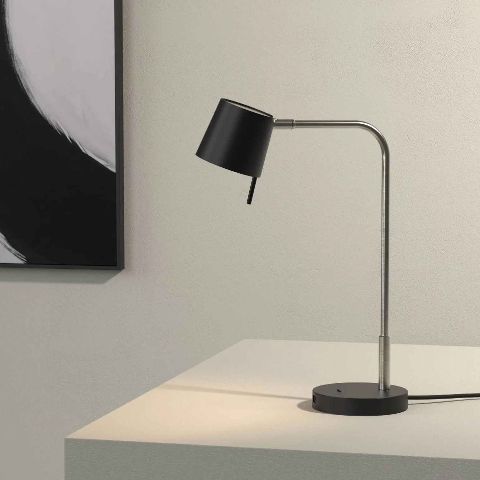 Lampa Stołowa Miura Desk USB Matowy Nikiel (kod produktu: 1444007) od marki Astro Lighting to wyjątkowy design, który łączy w sobie elementy stylu retro oraz nowoczesności. Ta elegancka lampa stołowa doskonale wpisuje się w różnorodne aranżacje wnętrz, urządzając je w sposób subtelny i funkcjonalny. Niezależnie od tego, czy szukasz idealnego oświetlenia do swojego biura, salonu czy sypialni, Miura sprosta Twoim oczekiwaniom, oferując zarówno estetykę, jak i użyteczność.
