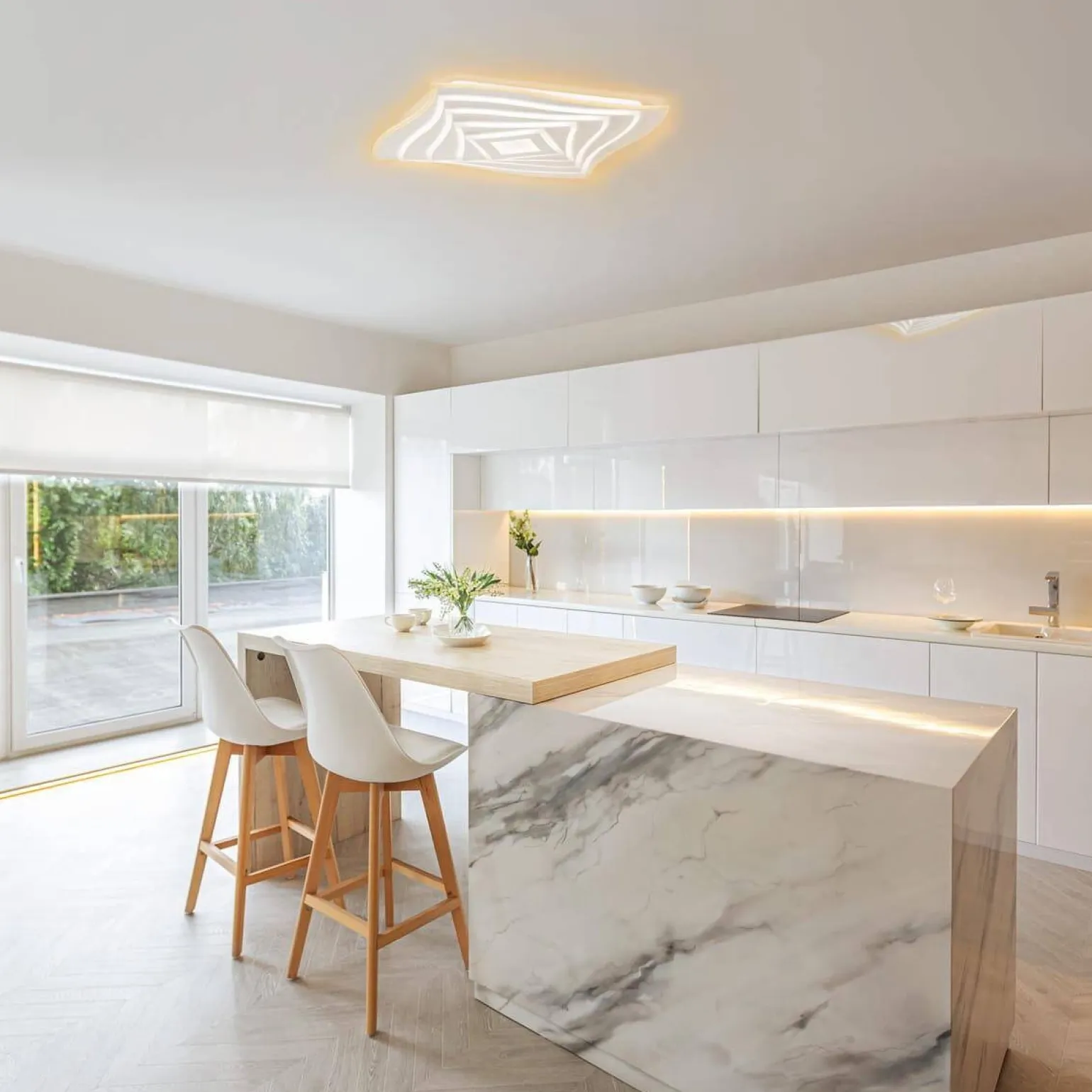 Lampa Hero jest wyposażona w jedno źródło światła o maksymalnej mocy 50 W, które generuje aż 5200 lumenów. Dzięki temu jest to idealne rozwiązanie jako lampa sufitowa do salonu czy lampa sufitowa do kuchni, gdzie intensywne światło jest kluczowe. Temperaturę barwy wynoszącą 2700 K cechuje przytulna, ciepła tonacja, która sprawia, że każde pomieszczenie staje się bardziej komfortowe.