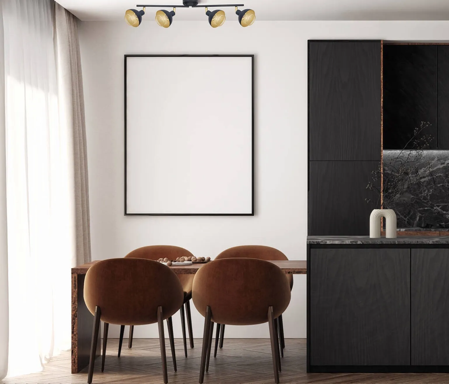 Lampa sufitowa Savio (SPL-27357-4-BK-GD) od marki ITALUX to doskonały wybór dla osób szukających nowoczesnych oraz stylowych rozwiązań oświetleniowych do swojego wnętrza. Dzięki połączeniu czarnego i złotego koloru, lampa ta idealnie wpisuje się w trendy industrialne loft, łącząc elegancję z nowoczesnością. Projektowana głównie z myślą o jadalni, doskonale sprawdzi się nad stołem, czy wyspą kuchenną, tworząc przytulną atmosferę sprzyjającą wspólnym posiłkom.