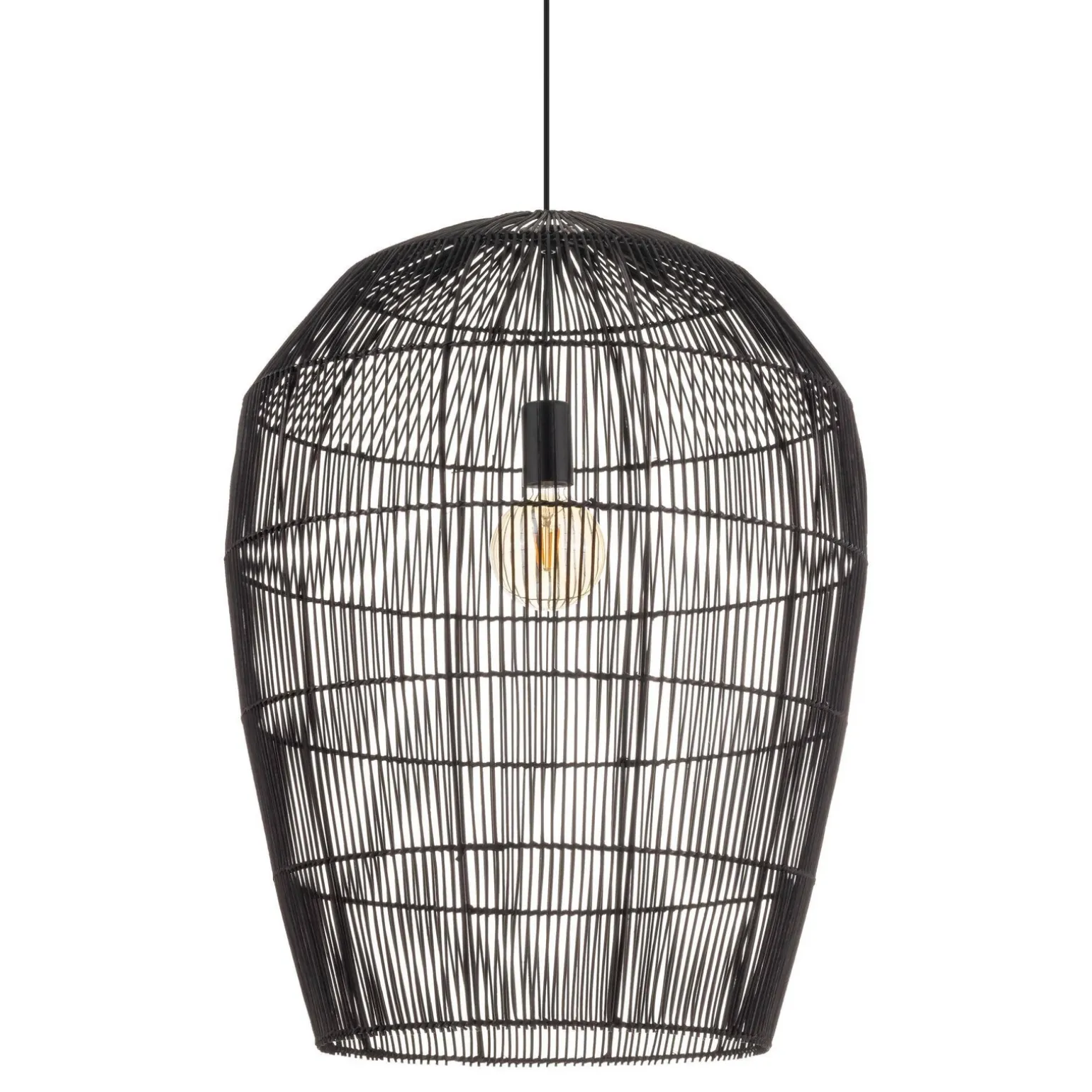 Przy wyborze lamp wiszących warto zwrócić uwagę na ich parametry techniczne. Lampa wisząca Nowodvorski posiada trzonek E27, co oznacza, że możesz użyć żarówek o maksymalnej mocy 25W. Materiał wykonania to wysokiej jakości bambus, który jest wyjątkowy, a zarazem ekologiczny. W połączeniu z czarnym kolorem staje się elementem, który doskonale wpisuje się w styl boho, skandynawski oraz rustykalny. Zastosowanie tego typu lamp wiszących nad stołem w jadalni to świetny sposób na stworzenie przytulnego i gościnnego wnętrza.