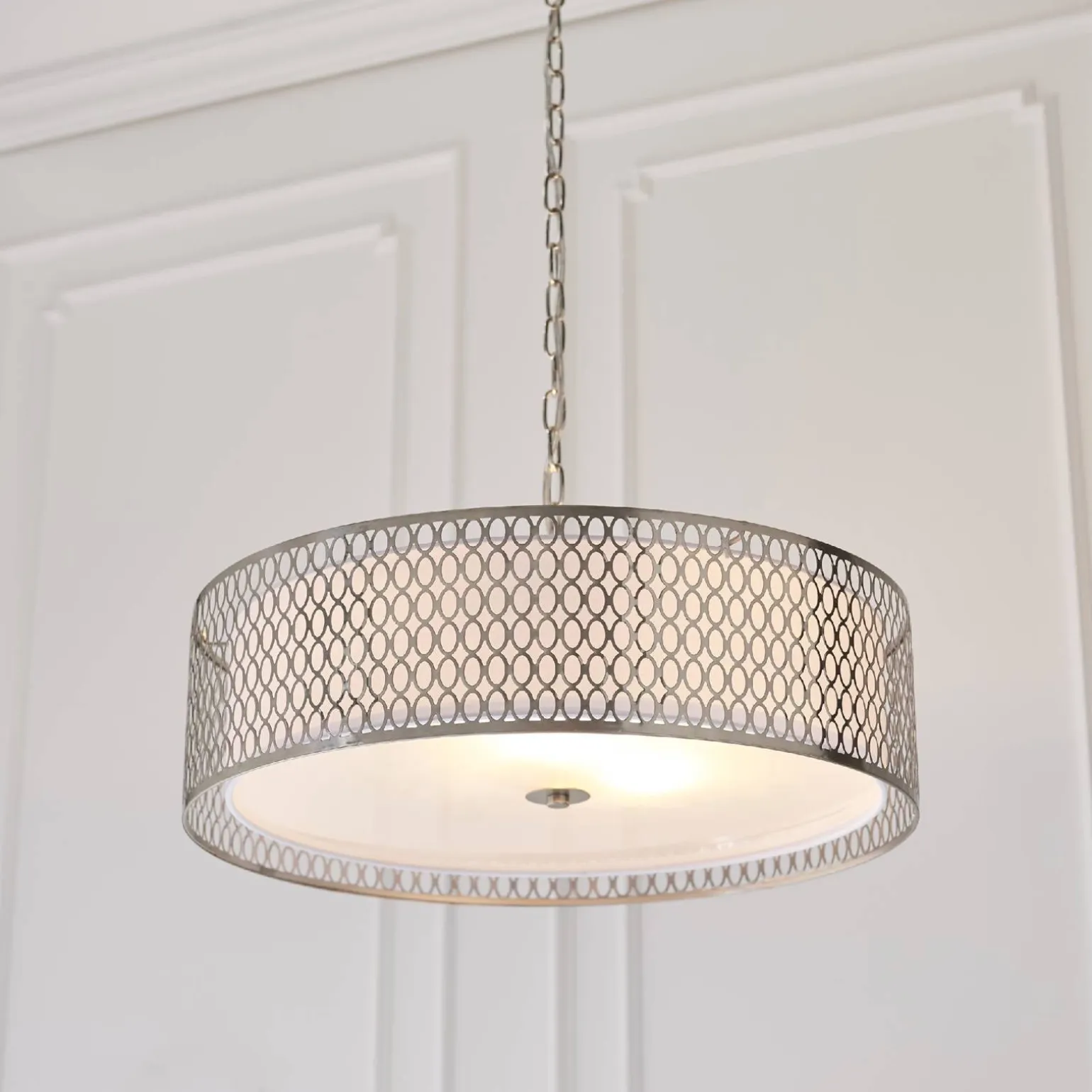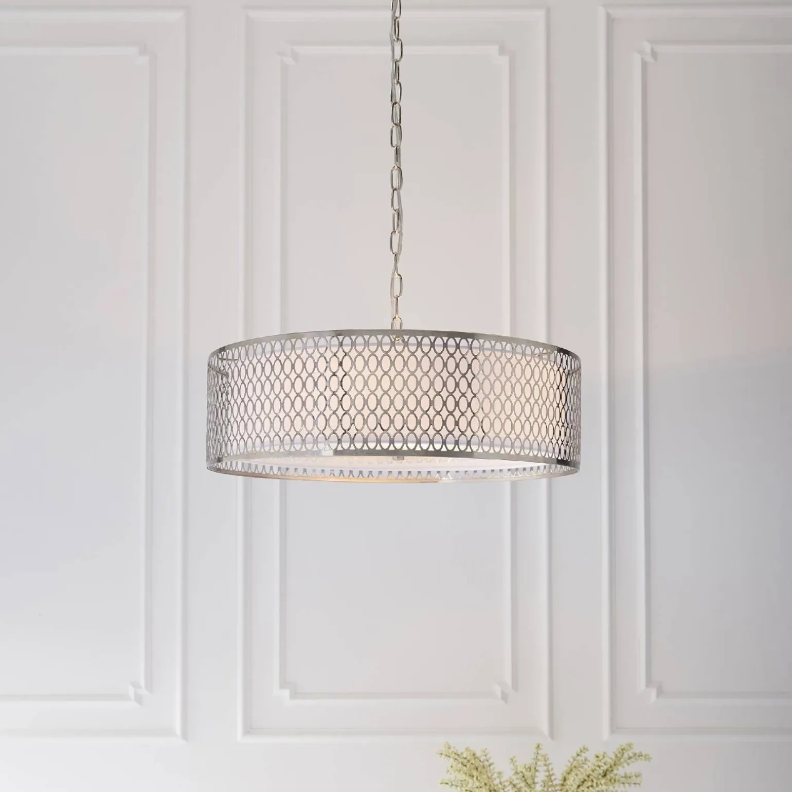Lampa Wisząca Cordero (81969) od marki Endon to idealne połączenie elegancji i nowoczesności, które z powodzeniem wpisuje się w różnorodne aranżacje wnętrz. Jej niklowe wykończenie sprawia, że doskonale komponuje się zarówno w klasycznych, jak i bardziej współczesnych przestrzeniach. Dodatkowo, talerz wykonany z satynowego niklu w połączeniu z białą tkaniną i matowym szkłem, tworzy subtelny, a zarazem wyrafinowany design, który przyciąga wzrok i wprowadza do wnętrza przyjemny nastrój.