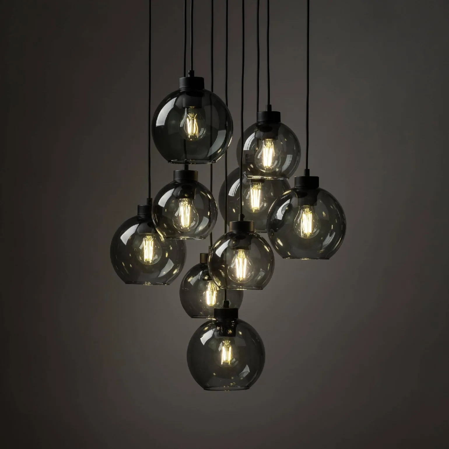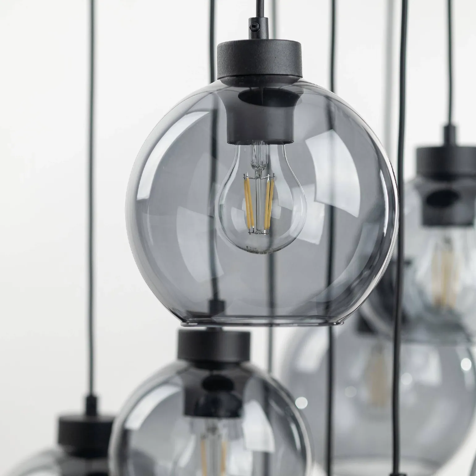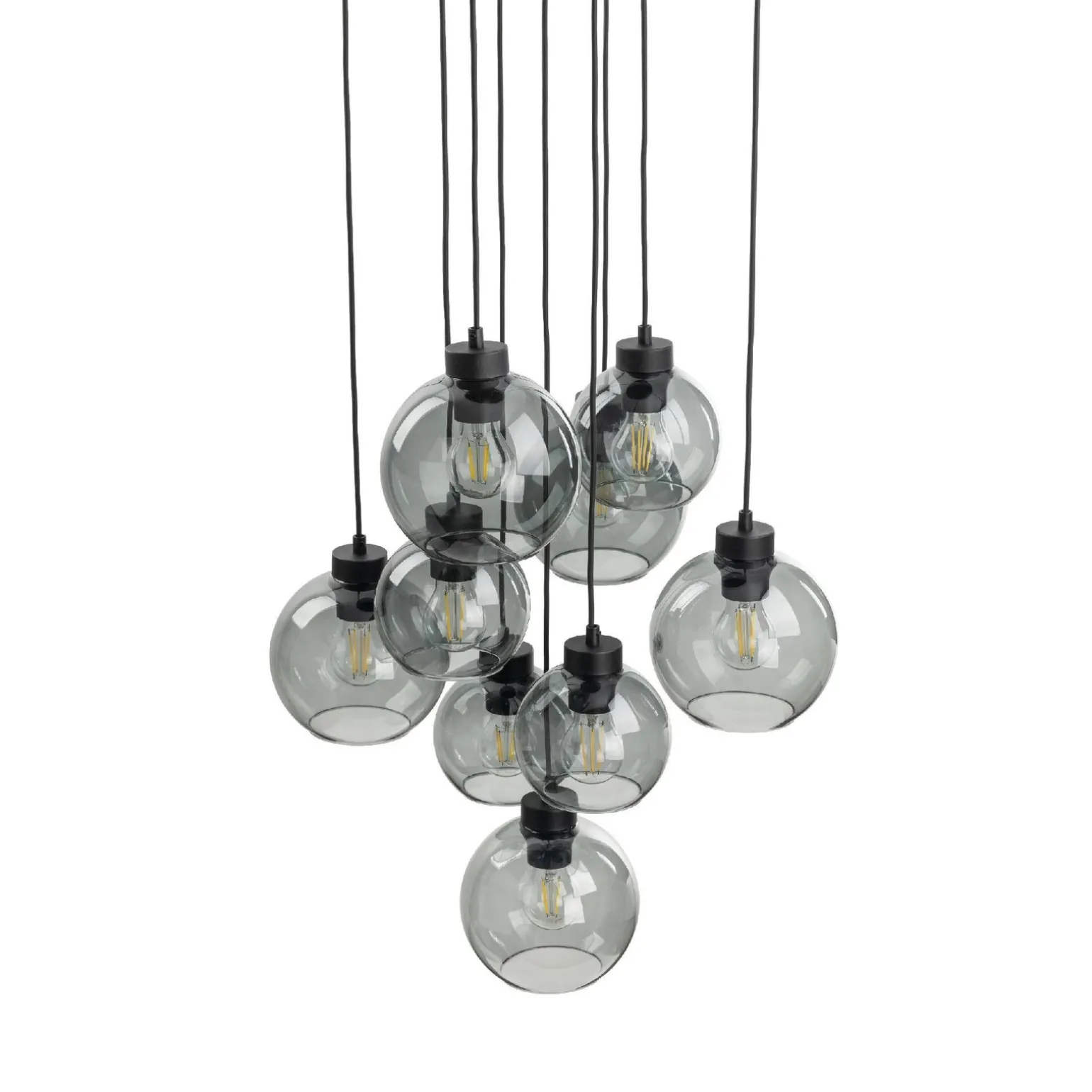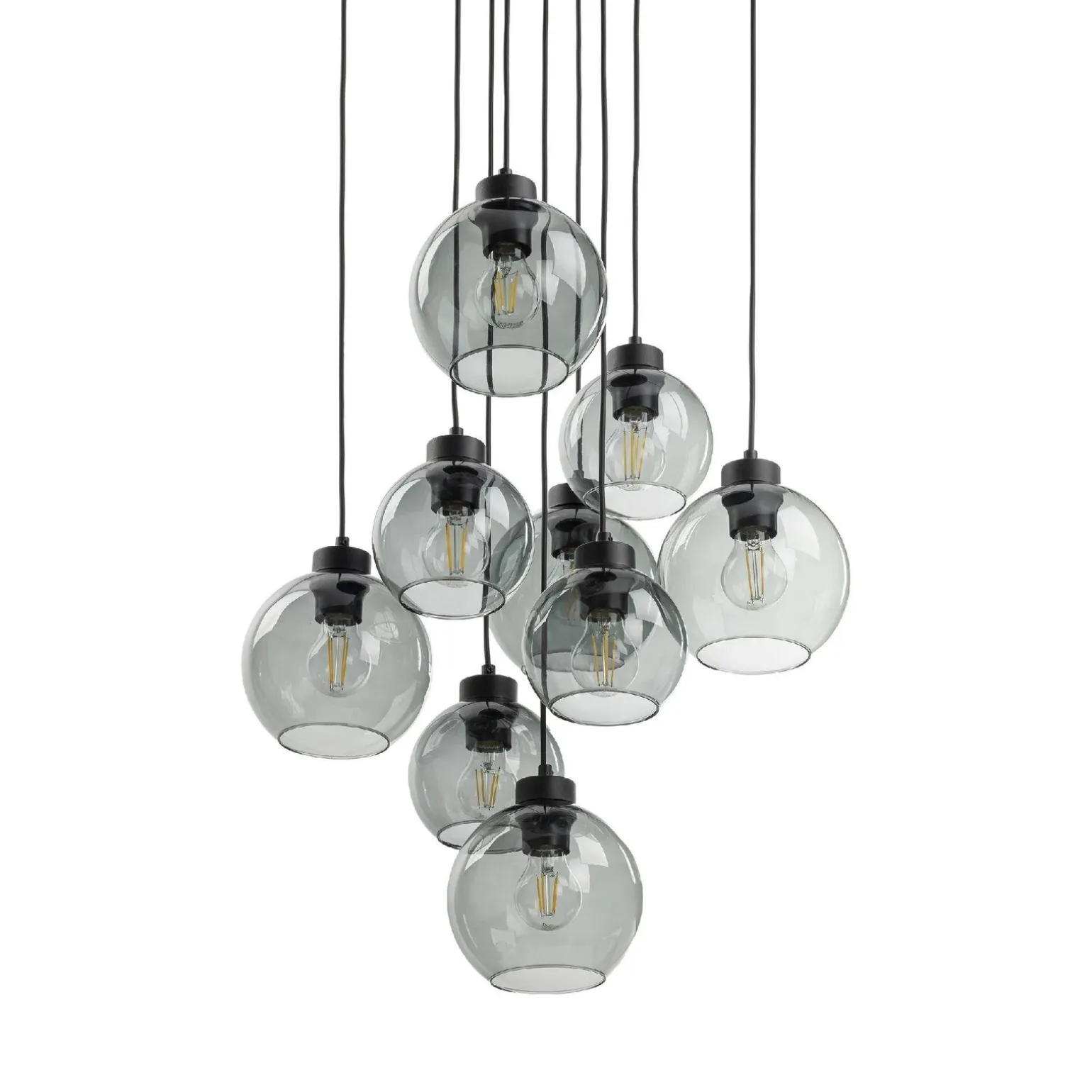 To wyjątkowe oświetlenie, jakie oferują lampy wiszące do salonu, składa się z dziewięciu źródeł światła, umieszczonych w eleganckich kloszach wykonanych ze szkła. Dzięki trzonkowi E27, możesz swobodnie dobrać odpowiednie żarówki LED o maksymalnej mocy 15W. Przy lampach wiszących do jadalni i lampach wiszących nad stół, mocne, ciepłe światło wprowadzi przytulny klimat do Twojej przestrzeni, sprzyjając rodzinnym spotkaniom oraz przyjęciom.