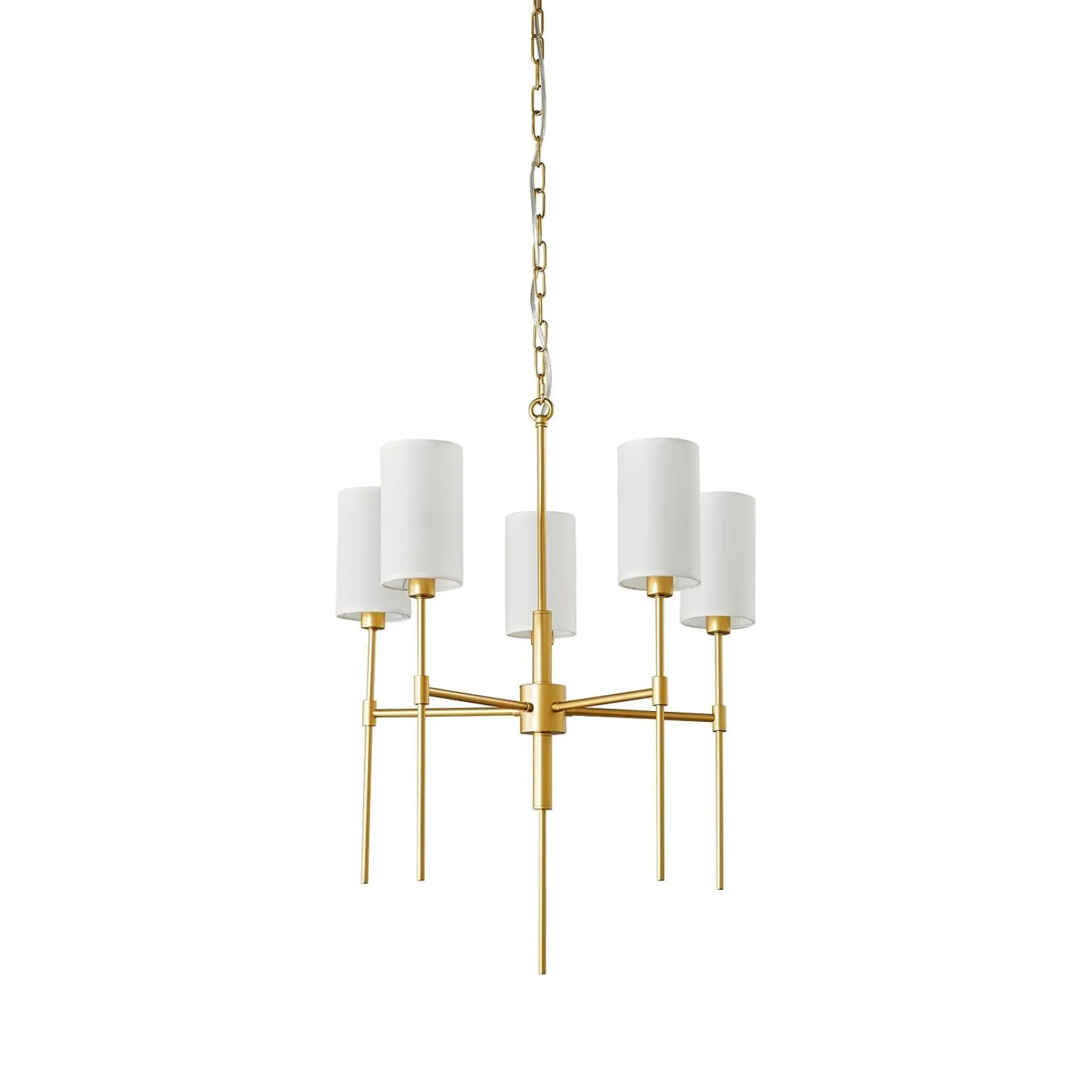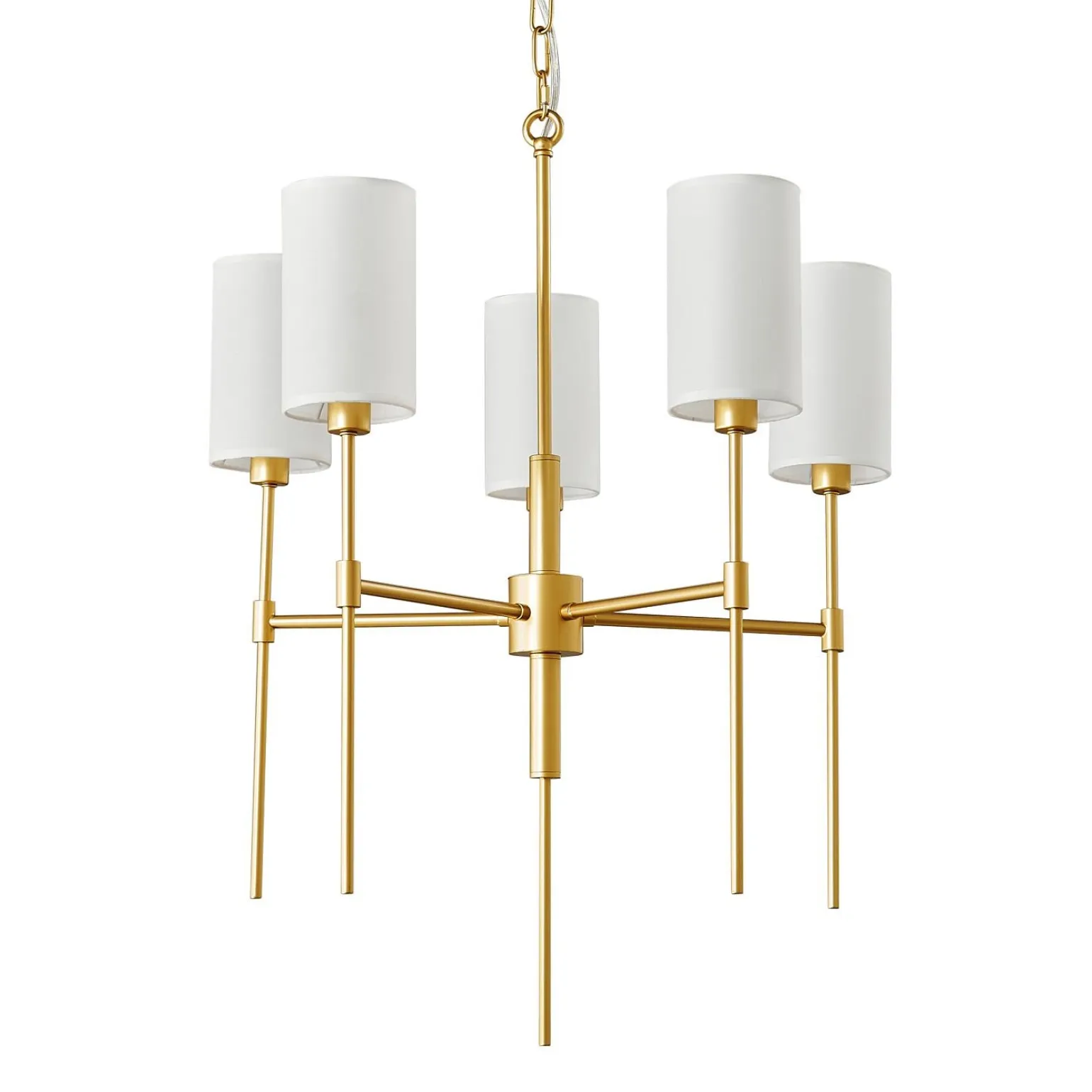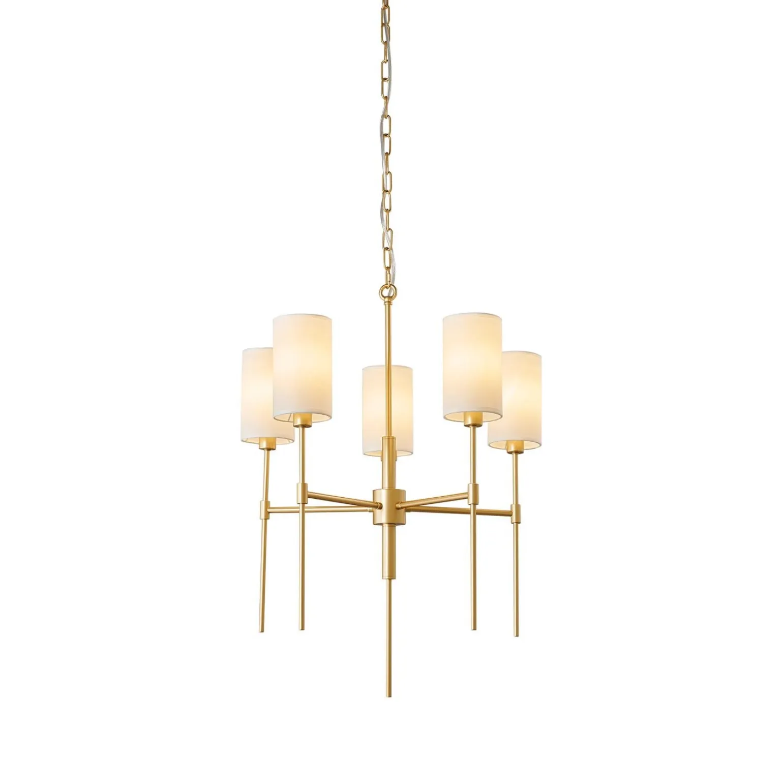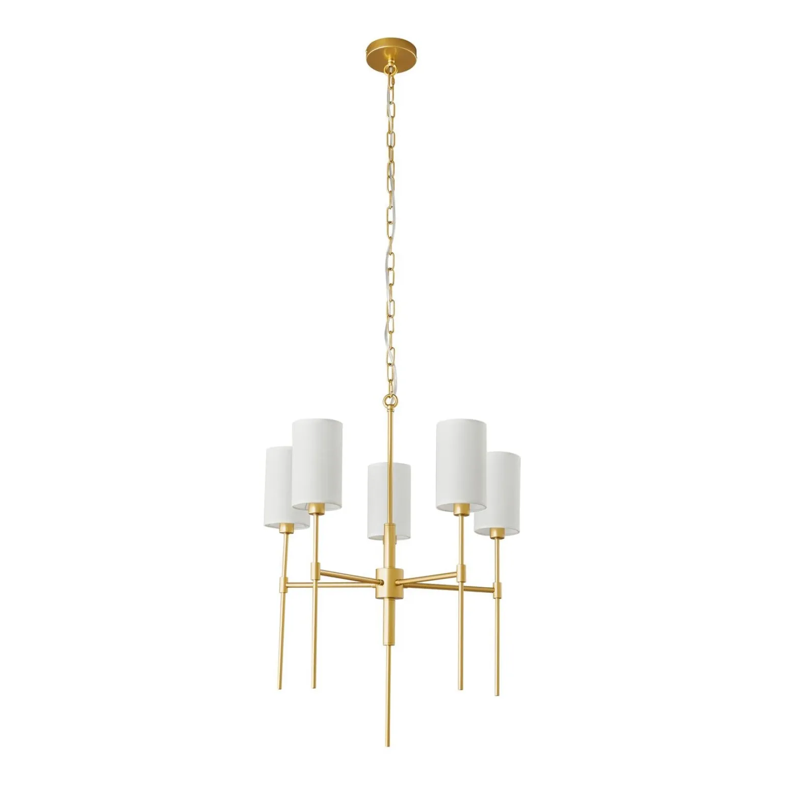 Model DARLING w kolorze złotym i białym, wykonany z wysokiej jakości tkaniny i metalu, doskonale odbija światło, tworząc przytulną atmosferę. Dzięki pięciu źródłom światła na trzonku E14, maksymalna moc 40W, żyrandol ten jest nie tylko stylowy, ale także funkcjonalny. To idealne rozwiązanie dla osób poszukujących lampy wiszące do salonu czy lampy wiszące do sypialni, które zachwycą swoim wyglądem i jakością wykonania.