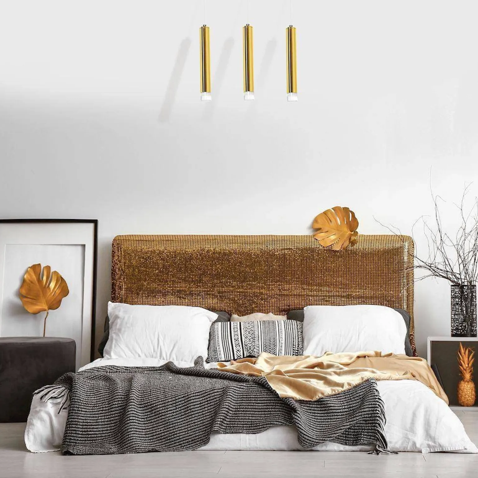 Wybierając lampy wiszące do sypialni, warto zwrócić uwagę na ich funkcjonalność. Lampa wisząca GOLDIE posiada trzy źródła światła, co zapewnia równomierne oświetlenie całego pomieszczenia. Jej 3-punktowy design pozwala na odpowiednie rozłożenie światła, co idealnie sprawdzi się w każdej sypialni, niezależnie od jej wielkości czy stylu.