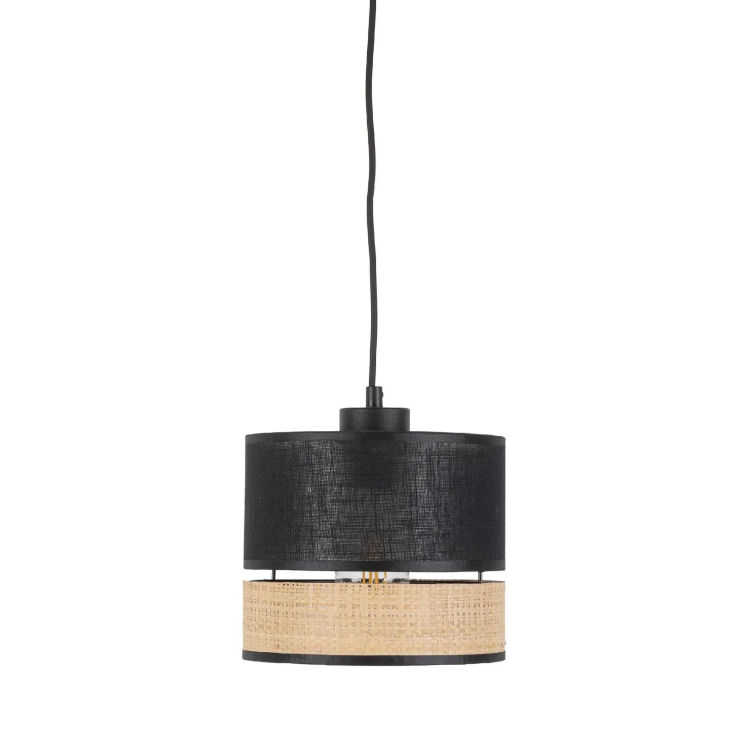 Ten model lampy to przykład lamp wiszących z abażurem, co nadaje mu szczególnego uroku. Zastosowanie materiałów takich jak metal i tworzywo sztuczne zapewnia trwałość oraz elegancki wygląd. Kolor czarny i słomkowy abażur doskonale ze sobą współgrają, oferując subtelną kontrastowość, która wyróżnia ten model na tle innych lamp wiszących. Dzięki temu, lampa wisząca PAGLIA NEW BLACK staje się centralnym punktem każdego pomieszczenia.