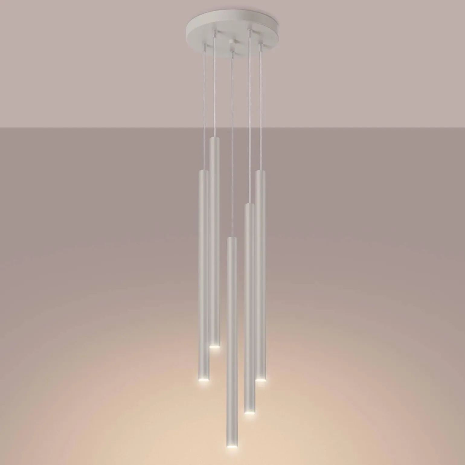 Lampa wisząca PASTELO 5P beżowa (SL.1516) od marki Sollux Lighting to idealny wybór dla tych, którzy pragną wprowadzić do swojego wnętrza nutę nowoczesności oraz elegancji. Jej nowoczesny styl sprawia, że doskonale wkomponuje się w różnorodne aranżacje, zarówno w salonie, jak i w sypialni. Dzięki zastosowanej kolorystyce w odcieniach beżowym i Ecru, lampa ta wprowadza ciepło i harmonię, czyniąc każdą przestrzeń przytulną.