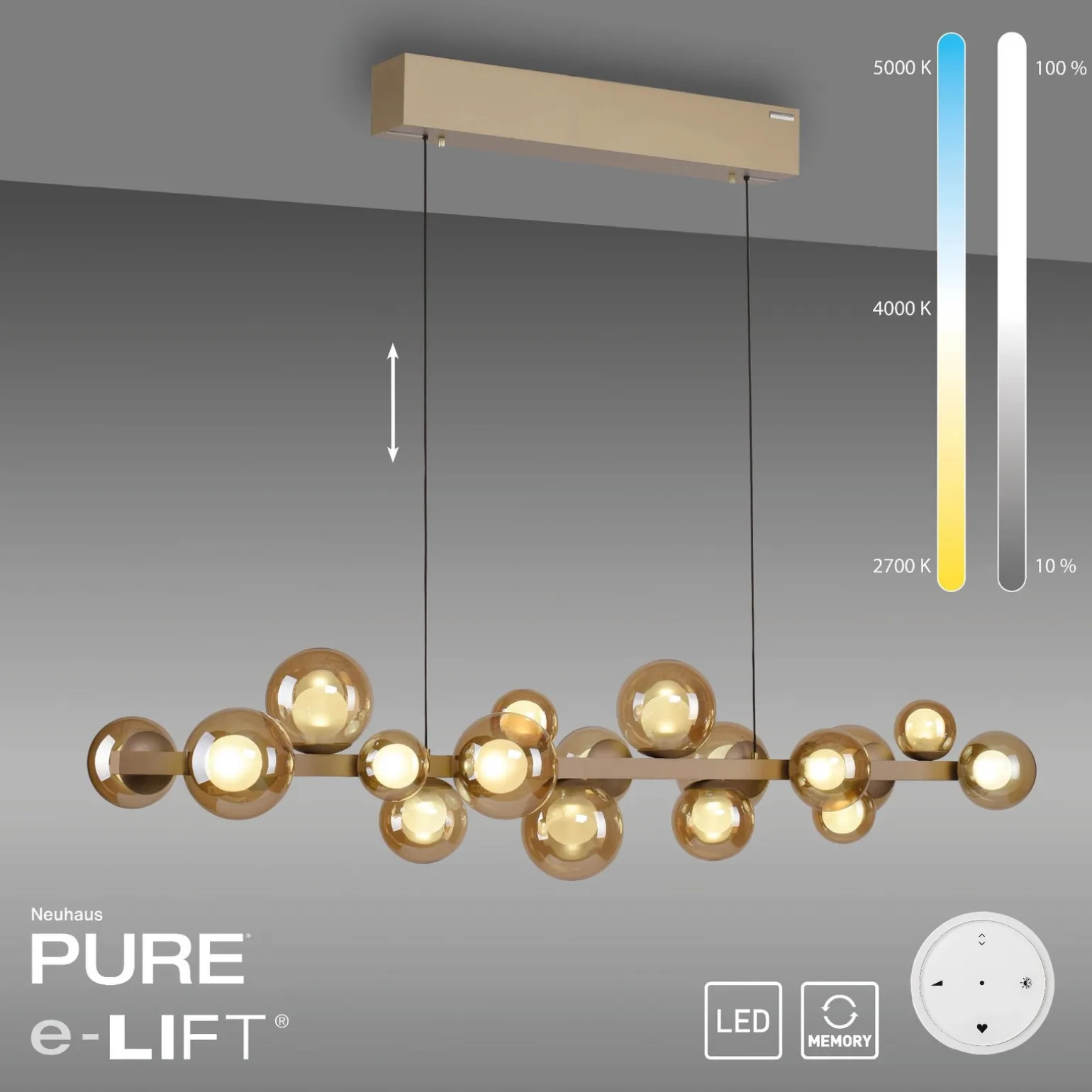 Lampa wisząca PURE E-POPUP 120cm w kolorze brązowym to doskonałe połączenie nowoczesnego designu z funkcjonalnością, które doskonale wpisuje się w stylistykę wnętrz glamour oraz new modern. Produkt marki Paul Neuhaus o kodzie 2557-97 został zaprojektowany z myślą o komforcie użytkowania i estetyce przestrzeni. Idealnie nadaje się do salonu, jadalni oraz kuchni, stając się głównym punktem aranżacyjnym każdego pomieszczenia.