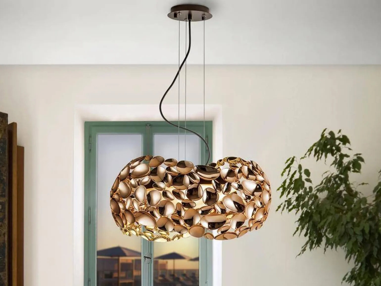 Charakterystyczną cechą Narisa jest jej wieloźródłowe oświetlenie — pięć źródeł światła daje możliwość optymalnego oświetlenia większych pomieszczeń. Dzięki temu, lampy wiszące tego typu idealnie nadają się do jadalni, salonów oraz przestronnych kuchni, gdzie efektowne światło może subtelnie podkreślić atmosferę i stworzyć przytulną aurę. Warto zaznaczyć, że model ten jest przeznaczony do użytku wewnętrznego, co czyni go idealnym rozwiązaniem do domów oraz mieszkań.