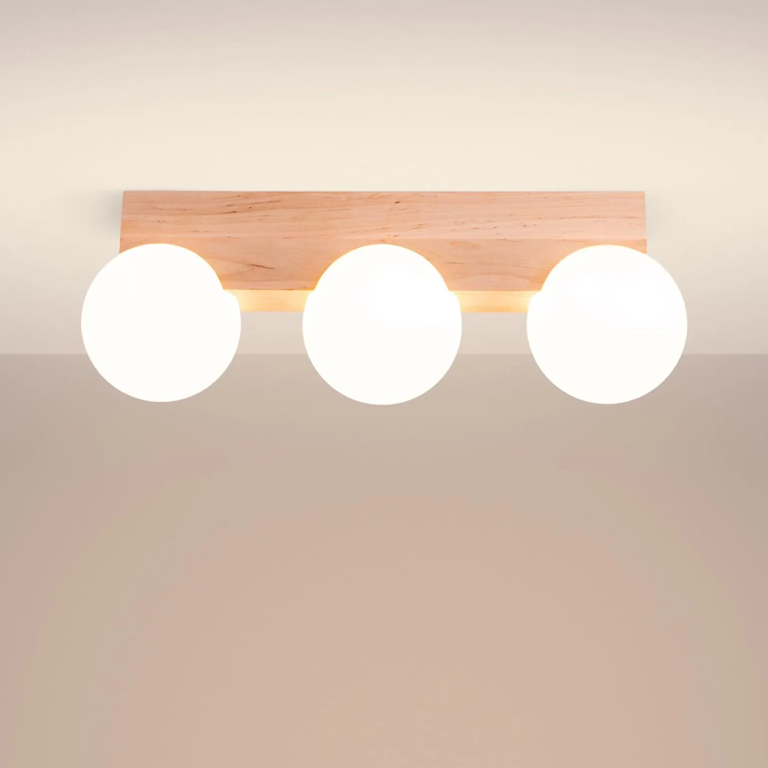 Plafon BULBO 3 to model, który dostosowuje się do różnych stylów wnętrzarskich, w tym nowoczesnego, boho oraz skandynawskiego. Wykonana z drewna i szkła, ta lampa sufitowa do salonu czy lampy sufitowe do sypialni przyciągają uwagę nie tylko wyglądem, ale także jakością użytych materiałów. Dzięki dużej różnorodności zastosowań, lampa idealnie sprawdzi się w każdej przestrzeni, niezależnie od jej funkcji – od kuchni, przez jadalnię, aż po sypialnię.