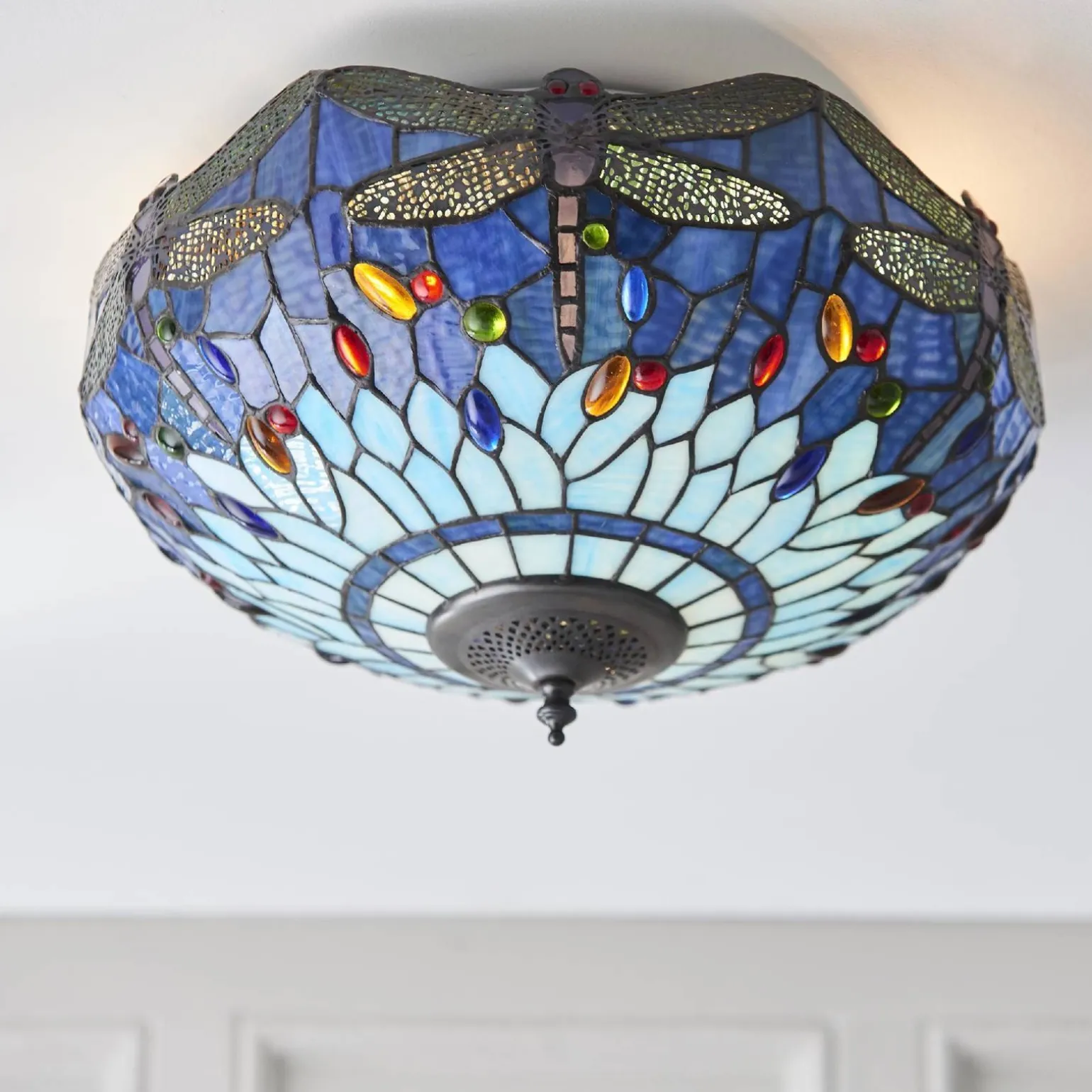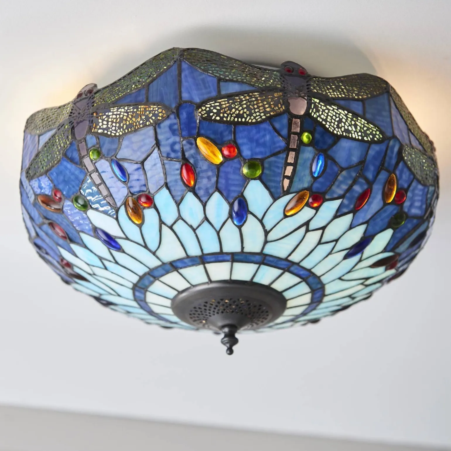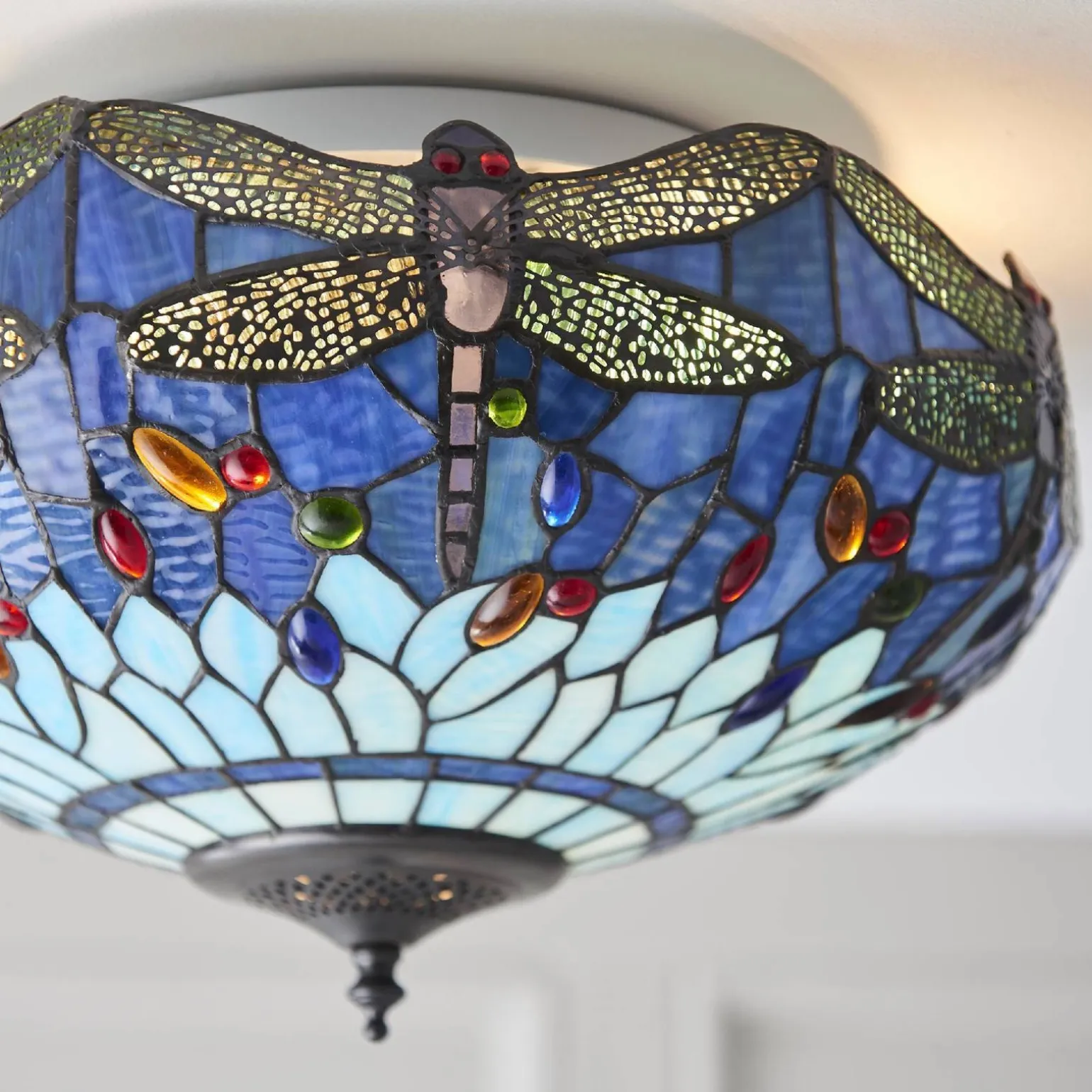 Plafon Dragonfly blue od renomowanej marki Tiffany to idealne połączenie elegancji i funkcjonalności, które doskonale wpisuje się w nowoczesne i klasyczne aranżacje wnętrz. Wyposażony w dwa źródła światła, plafon ten staje się nie tylko źródłem oświetlenia, ale także wyjątkową ozdobą, która nadaje atmosfery każdemu pomieszczeniu. Niezależnie od tego, czy planujesz zastosować go w salonie, sypialni czy jadalni, plafon Tiffany Dragonfly blue z pewnością przyciągnie wzrok i zachwyci gości.