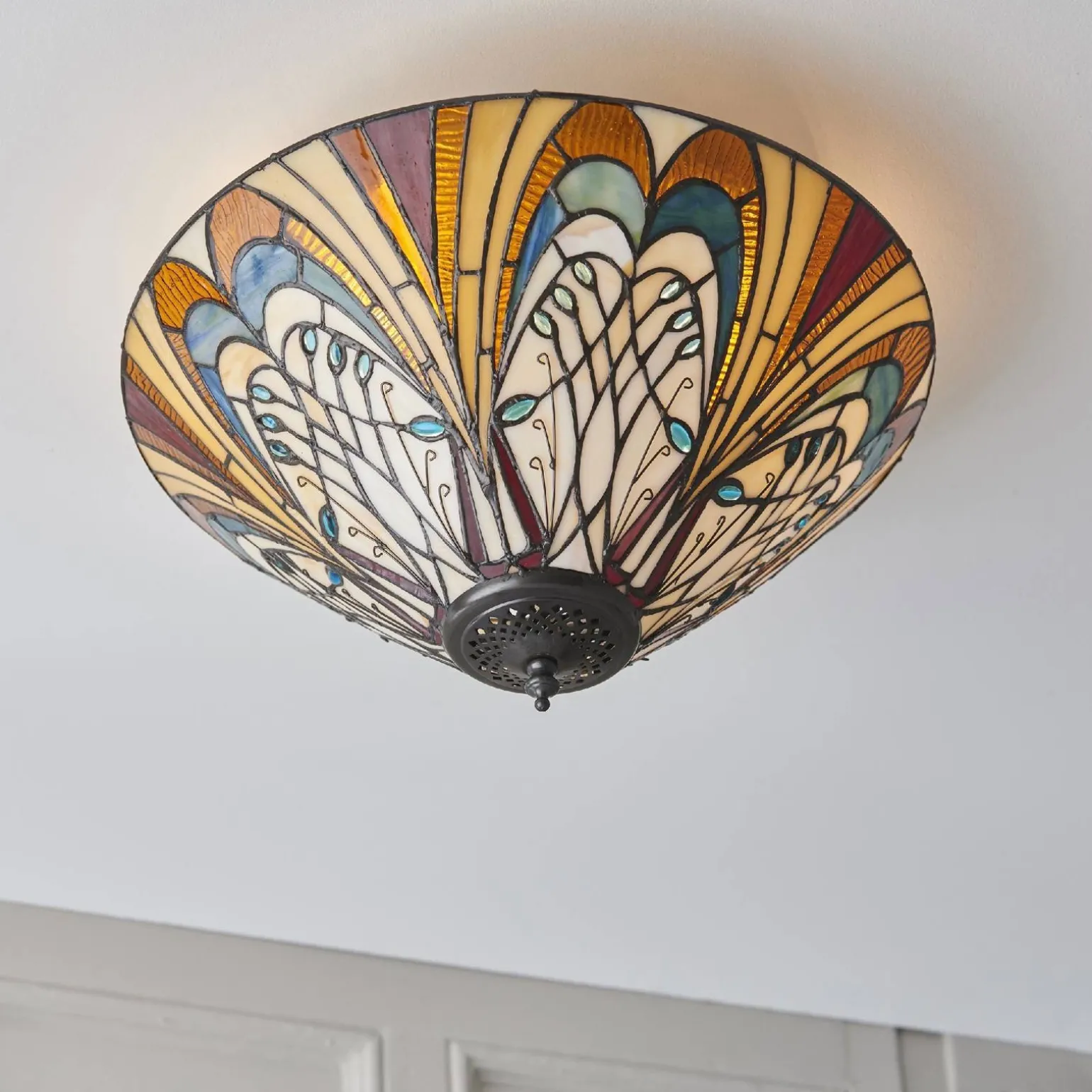 Plafon Hector (70241) Tiffany wyróżnia się także jego funkcjonalnością. Dzięki opcji ściemniania, użytkownik ma możliwość regulowania natężenia światła, co pozwala na stworzenie odpowiedniej atmosfery w pomieszczeniu, niezależnie od okazji. To doskonałe rozwiązanie dla osób, które cenią sobie komfort i funkcjonalność w swoim otoczeniu.
