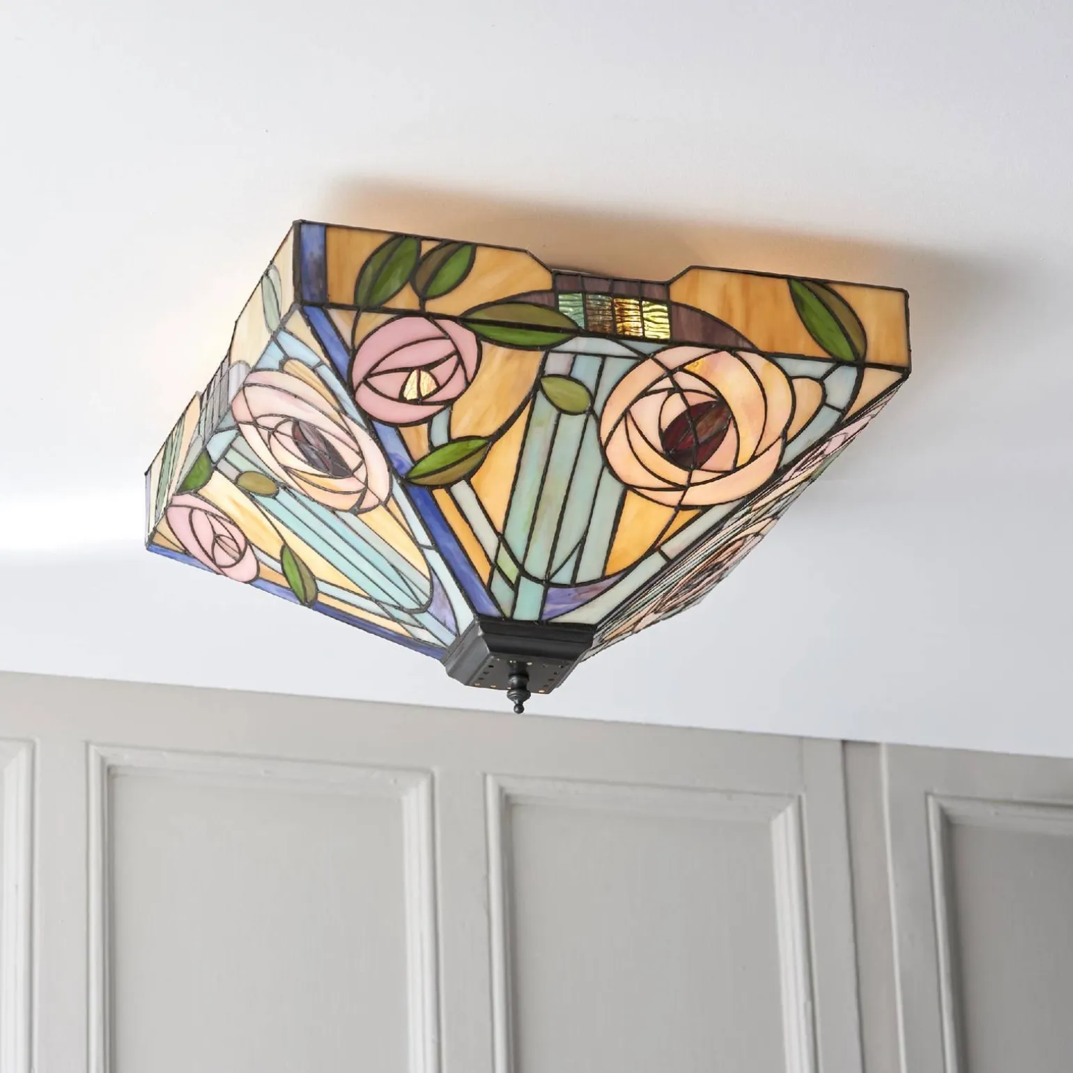Plafon Willow (70698) od marki Tiffany to wyjątkowe połączenie stylu art deco, retro i hampton, które doda niepowtarzalnego charakteru każdego wnętrzu. Dzięki swojej eleganckiej formie oraz subtelnym detalom, plafon doskonale wpasuje się w różnorodne aranżacje, zarówno w salonie, sypialni, jak i jadalni. Wyposażony w dwa trzonki E27, zapewnia możliwość stworzenia indywidualnego oświetlenia, które podkreśli piękno Twojego wnętrza.