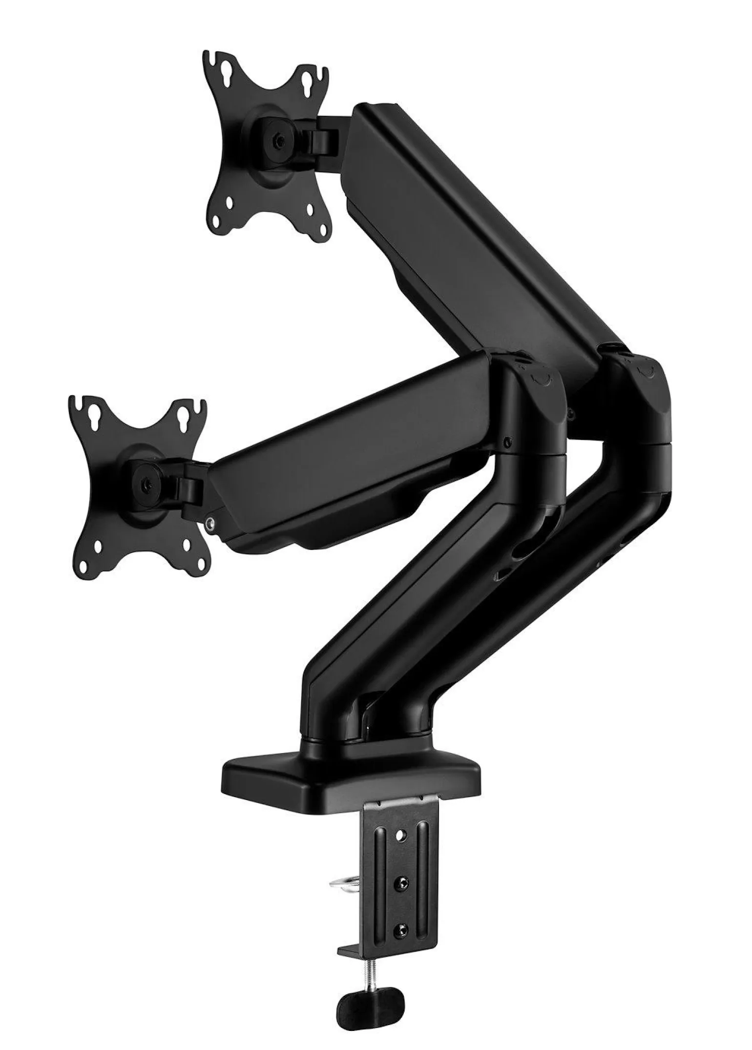 Dzięki systemowi mocowania VESA, uchwyt LVN SYSTEM LV0664 jest kompatybilny z większością monitorów o przekątnej do 34 cali, zarówno w standardzie 16:9, jak i z panelami ultrawide. Umożliwia to użytkownikom swobodne dostosowanie rozstawu monitorów, co jest niezwykle istotne w pracy wymagającej wielozadaniowości czy w grach komputerowych. Mocowanie zgodne ze standardem VESA (75×75 mm oraz 100×100 mm) zapewnia stabilność i bezpieczeństwo w użytkowaniu.