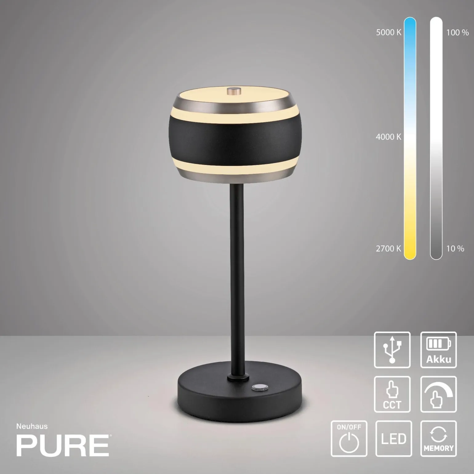Podsumowując, przenośna, ładowana lampa stołowa PURE FALLING RINGS CZARNA (4503-18) od Paul Neuhaus to doskonały wybór dla osób, które cenią sobie funkcjonalność, oszczędność energii oraz nowoczesny design. Dzięki jej eleganckiemu wyglądowi i wszechstronnym możliwościom zastosowania, z pewnością wzbogaci każde wnętrze, a jej użytkowanie będzie czystą przyjemnością.