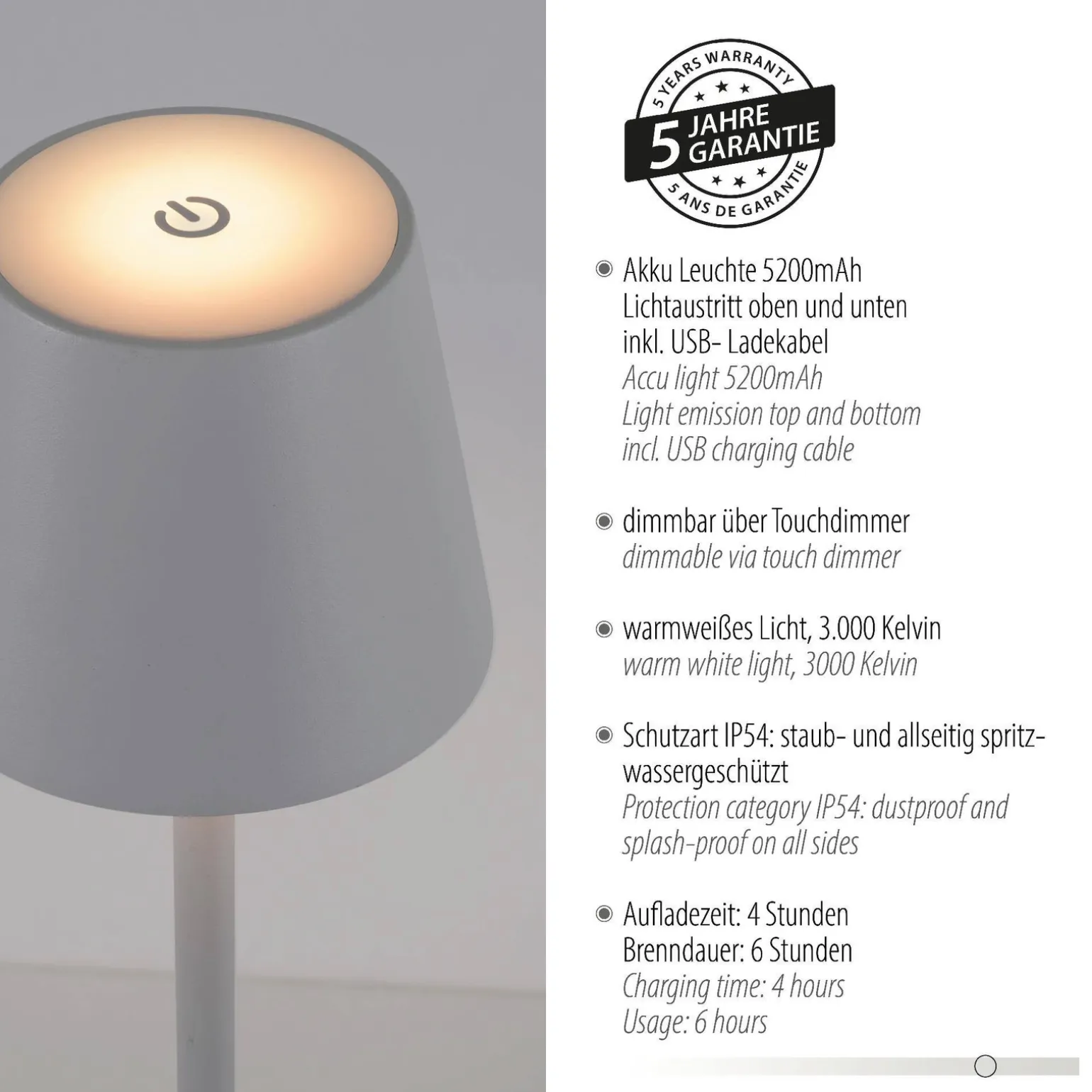 Udogodnieniem jest również możliwość ładowania przez USB, co sprawia, że lampa Euria jest niezwykle praktyczna i łatwa w użyciu. To idealna lampa stojąca ogrodowa, którą można postawić w różnych miejscach na zewnątrz, bez kłopotliwych kabli. Ten nowoczesny sposób zasilania jest szczególnie istotny w kontekście estetyki przestrzeni, gdyż eliminuje nieestetyczne przewody i pozwala na bardziej swobodne aranżacje.