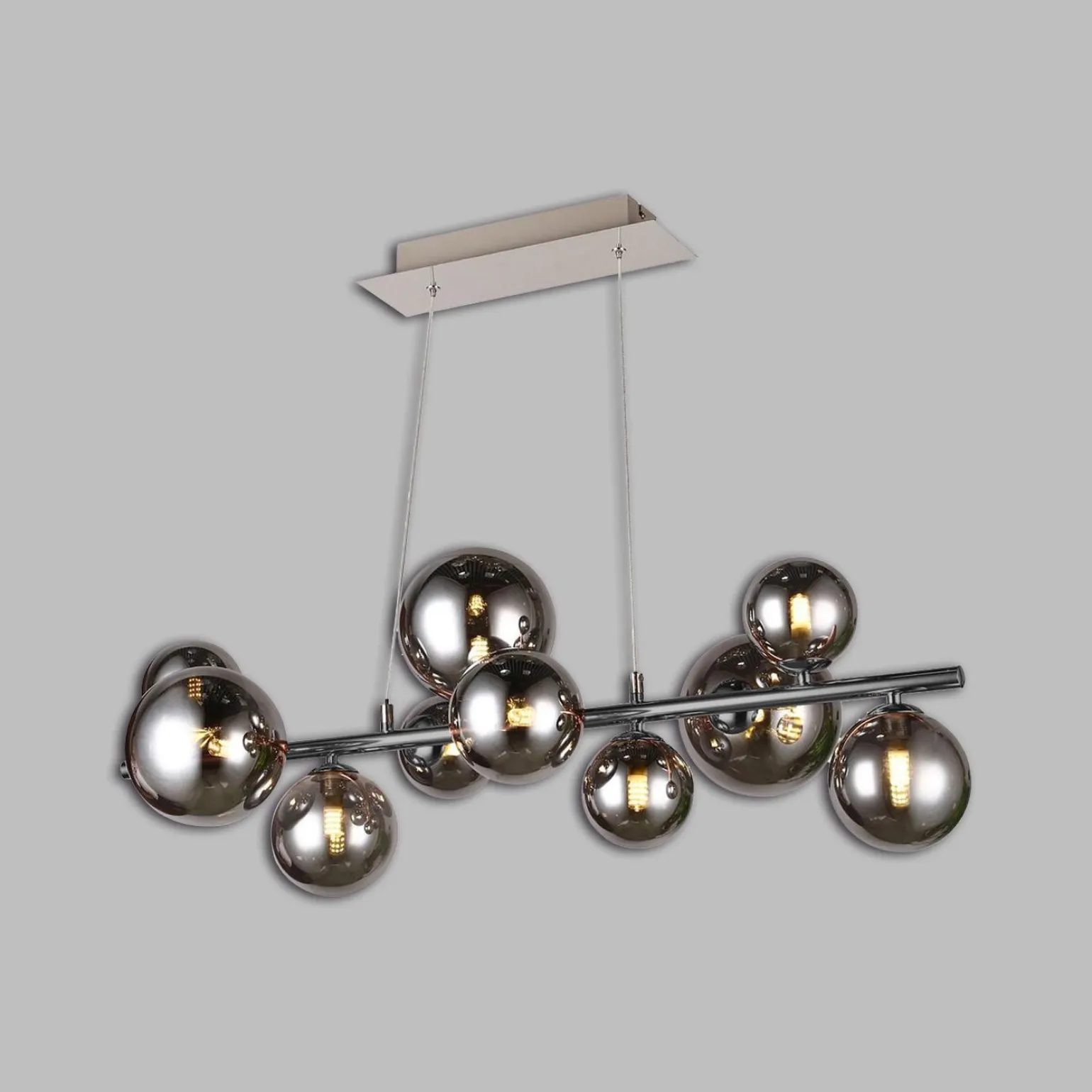 SEVILLA Lampa wisząca marki Aviano Lighting to wyjątkowy element wystroju, który z pewnością przyciągnie uwagę w każdym wnętrzu. Z dziesięcioma kulistymi kloszami w eleganckim kolorze czarnego chromu, ta lampa wisząca stanie się nie tylko źródłem światła, ale także efektowną dekoracją w jadalni lub salonie. Jej nowoczesny design i przemyślana forma idealnie wpisują się w stylistykę Glamour, Hampton oraz Modern classic, co czyni ją doskonałym wyborem dla osób poszukujących eleganckich rozwiązań oświetleniowych, które dodadzą szyku i wyrafinowania.