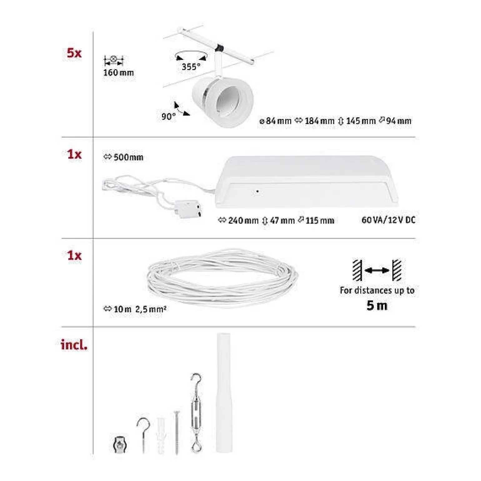Produkt charakteryzuje się nieszablonową konstrukcją, umożliwiającą dowolne rozmieszczenie źródeł światła. W skład zestawu wchodzi pięć lamp o maksymalnej mocy 5x10W, co pozwala na efektywne oświetlenie zarówno dużych, jak i mniejszych przestrzeni. Dzięki zastosowaniu trzonka GU5.3/MR16, można łatwo wymieniać żarówki na takie, które najlepiej odpowiadają Twoim potrzebom oraz preferencjom.