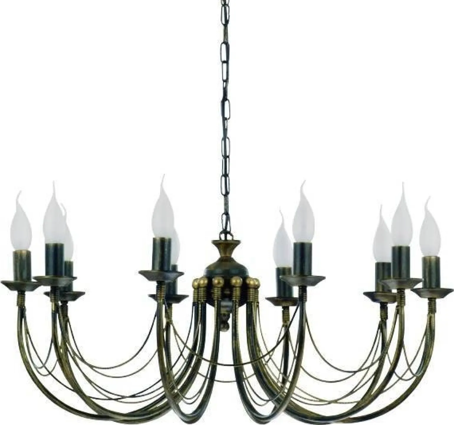 Oferując aż 10 źródeł światła, żyrandol ARES X gwarantuje odpowiednie oświetlenie każdego wnętrza. Dzięki możliwości zastosowania żarówek o trzonku E14, można wybierać spośród szerokiego asortymentu lamp, w tym nowoczesnych żarówek LED, które są energooszczędne i posiadają długą żywotność. Maksymalna moc wynosząca 60 W sprawia, że żyrandol z łatwością oświetli większe pomieszczenia, takie jak salon czy jadalnia.