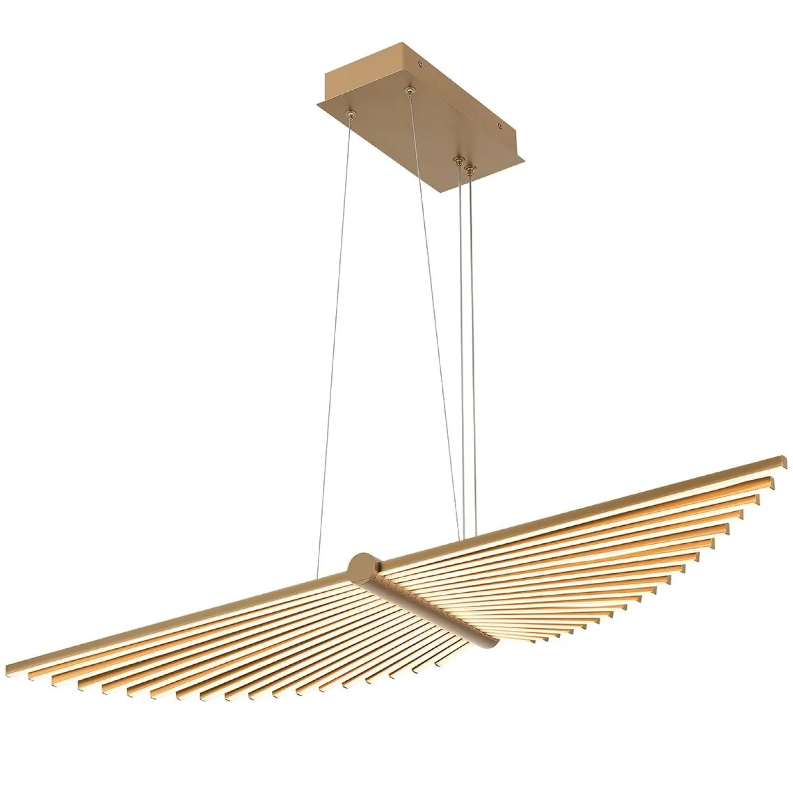 Żyrandol Seraph – Szczotkowane Złoto od marki Quintiesse to elegancki dodatek, który wyposażony w innowacyjną technologię LED, doskonale wpasuje się w każdy nowoczesny wystrój wnętrz. Jego unikalny design nawiązuje do kinetycznych skrzydeł Muzeum Sztuki w Milwaukee, co czyni go nie tylko źródłem światła, ale także interesującym elementem dekoracyjnym. Złoty kolor żyrandola dodaje luksusu, stanowiąc doskonały akcent w salonie, sypialni oraz jadalni.